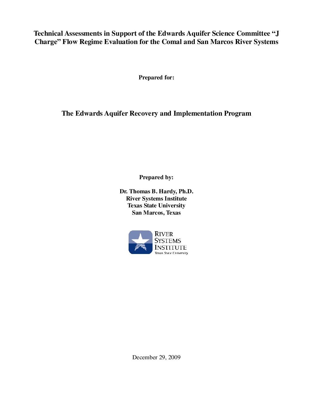 Technical Assessments in Support of the Edwards Aquifer Science Committee J Charge: Flow Regime Evaluation for the Comal and San Marcos River Systems