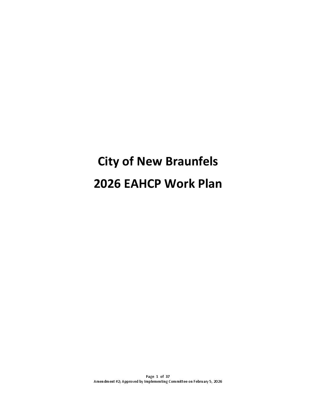 2026 City of New Braunfels Work Plan – Amendment 2