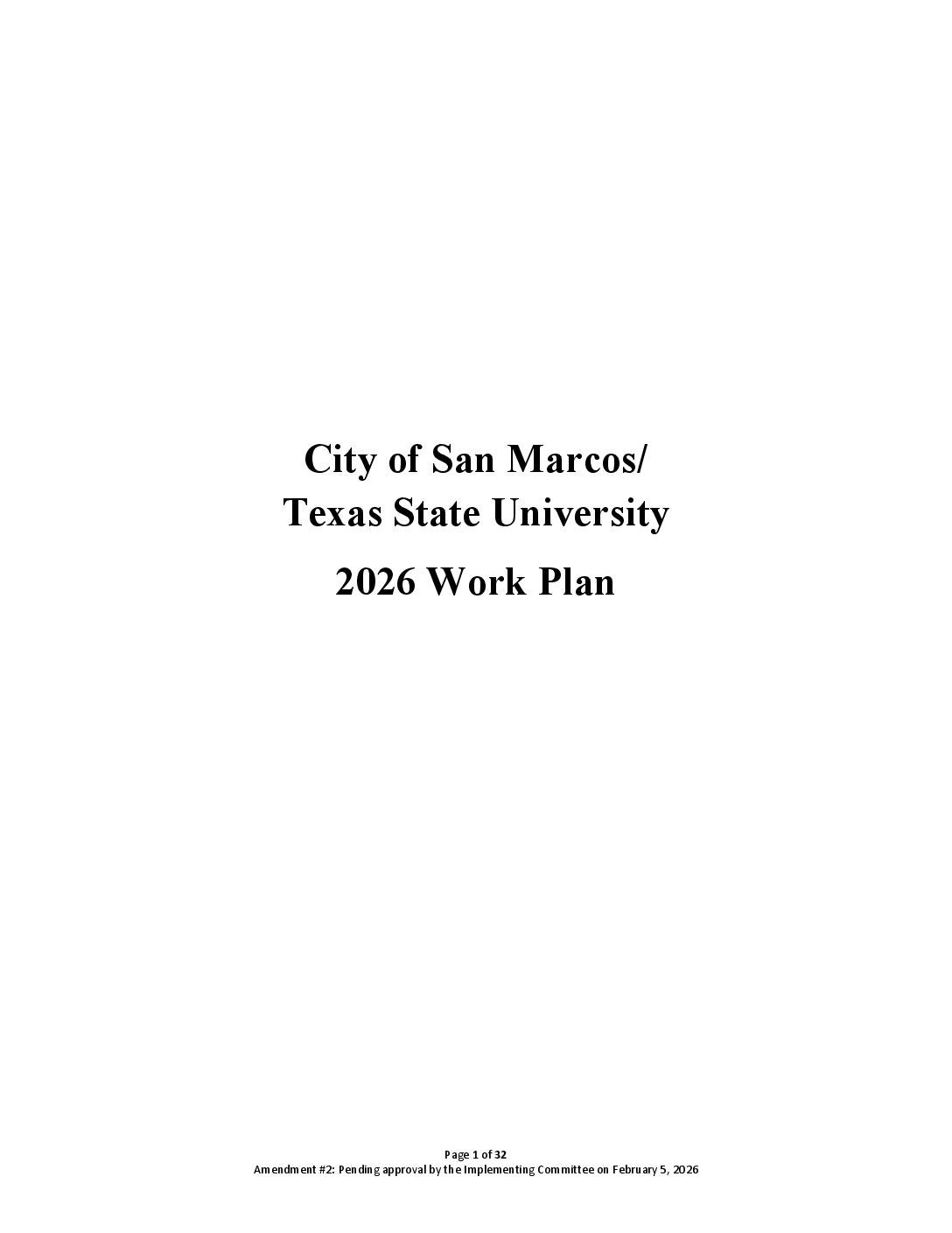 2026 City of San Marcos/Texas State University Work Plan – Amendment 2